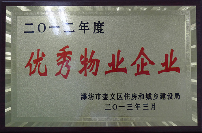 二0一二年度優(yōu)秀物業(yè)企業(yè)